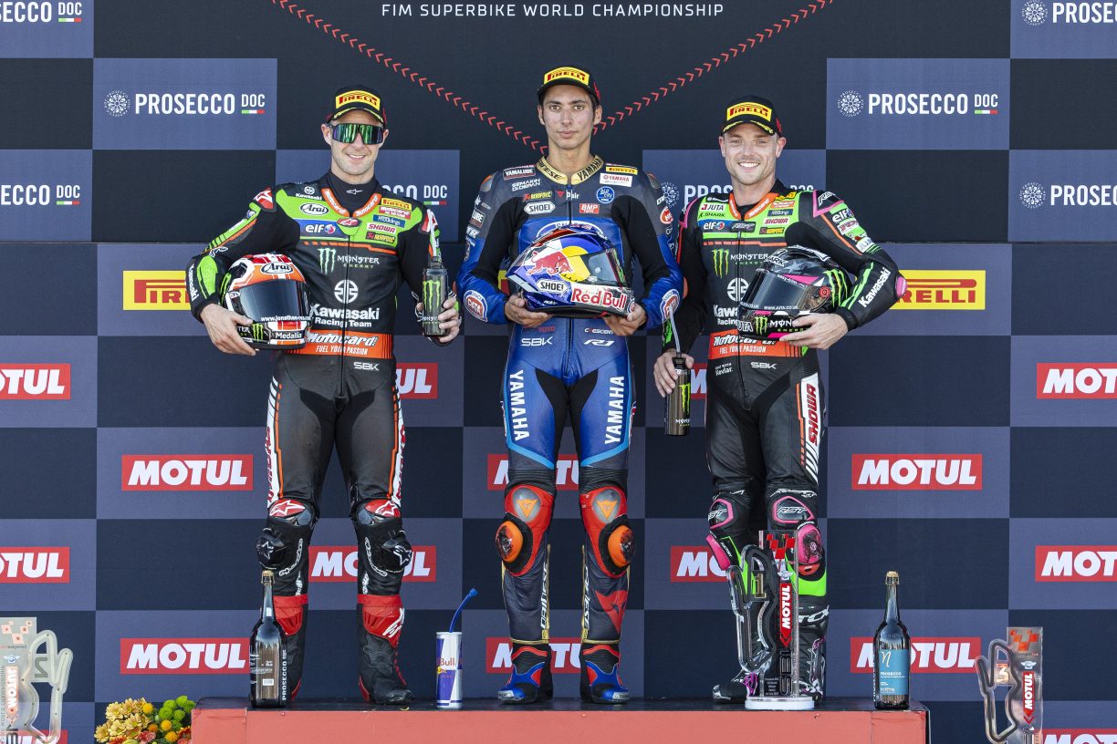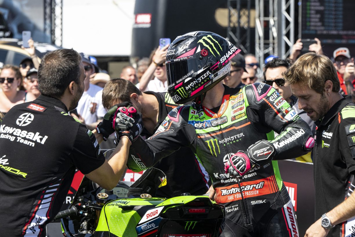 The first race of the WorldSBK championship round at Donington Park provided podium success for Kawasaki Racing Team. Riders Jonathan Rea and Alex Lowes, giving Kawasaki its 500th and 501st podium finishes. Rea was a second after a dramatic 23-lap race which he started from pole position. With Lowes securing his first podium finish of the season in third place.