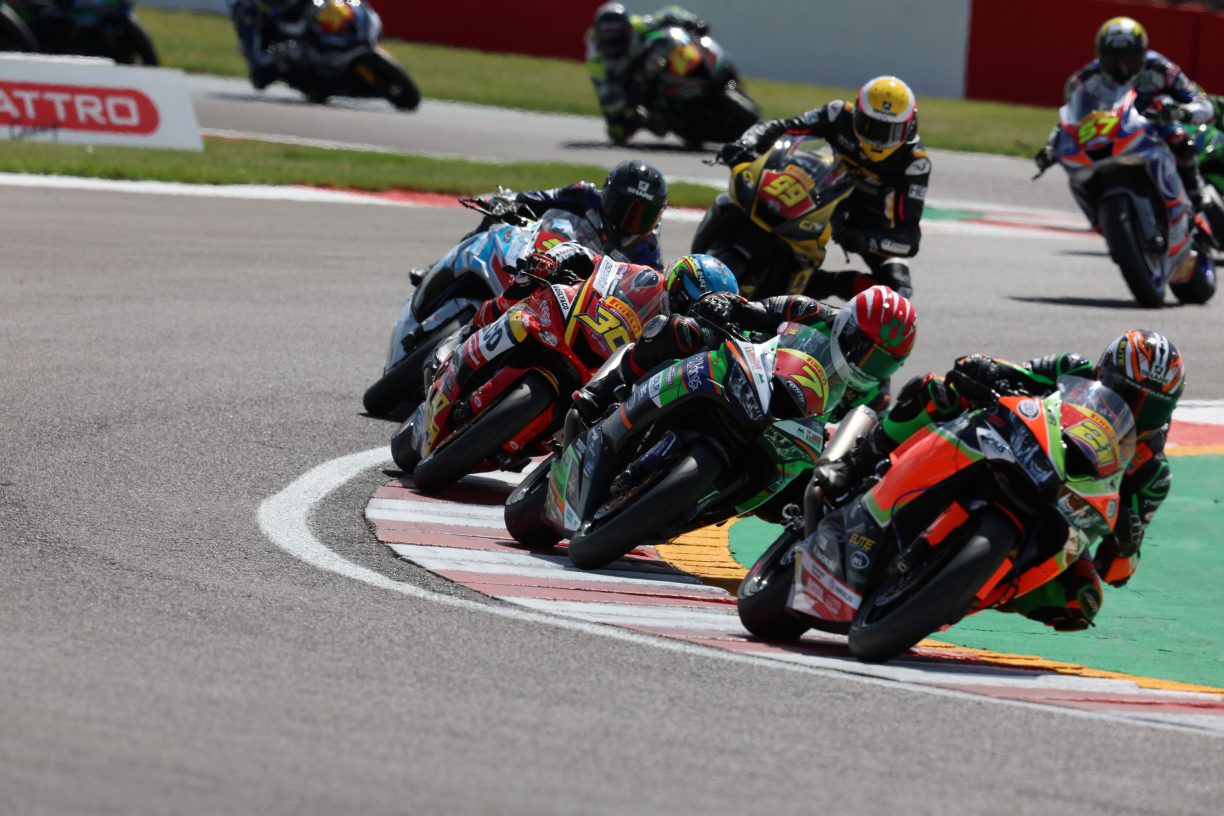 The first race for us on Sunday was the Junior Superstock race at 11:55 for Sam and Finley. The lights went out at 11:55 but 2 laps in the race it was red flagged. When the race restarted Sam was fighting well, along with Finley, before the race was, unfortunately, red flagged a second time, seeing the race come to an early finish due to having run two thirds race distance. Sam finished the race P5 and was fighting for a podium throughout the race. His fastest lap of the race was a 1:09.846 which he put in on lap 9 of the restarted race. Finley also had a good race and was fighting within the top 10 to eventually take the chequered flag in P9. His fastest lap of the race was put in on lap 3 and was a 1:10.622 which was also his fastest lap of the entire weekend!