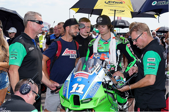 An extra challenge for Rory would be coming back to his Cheshire Mouldings ZX-10RR superbike. Following his Moto2 wildcard ride at the British Grand Prix. He did well on the Moto2 bike but a superbike around Thruxton is a completely different matter. Not helped by the fact that this would only be Rory’s third visit to the circuit. Last year we had to contend with cold, wet conditions!