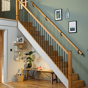 The Wavey Black Iron Plain Rake Spindle helps create a contemporary staircase when combined with the contemporary iron range. Landing Spindles also available.